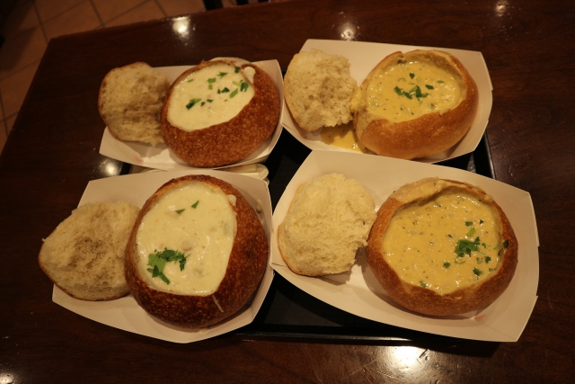 ハンドボールのボールより大きい丸いパンの真ん中をくり抜いた中にクラムチャウダーが入って出てくるのですが、そのパンが酸っぱいせいのようです。