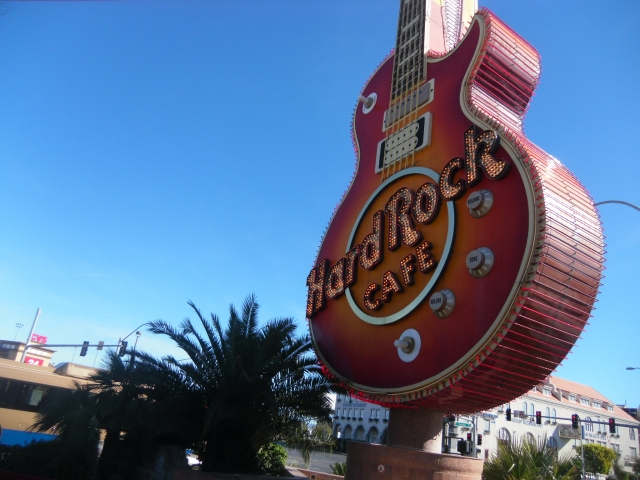 ラスベガスでは、当時仕事上タッグを組んで活動していた営業のK君ら数人と、大きなレスポールギターのネオンで有名なハードロックカフェに行きましたが、注文した料理をお店の人が持ってきて「お待たせしました」と言う代わりに、”Here we go!”