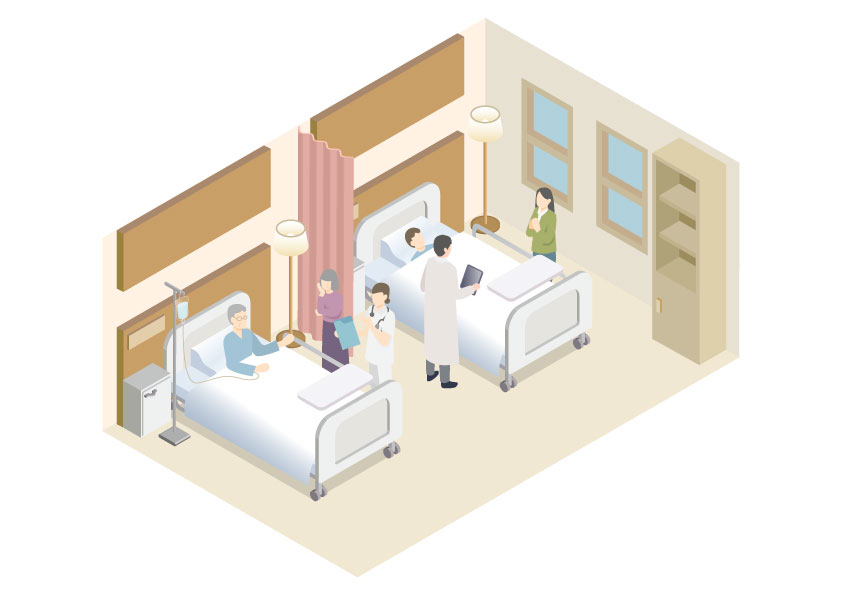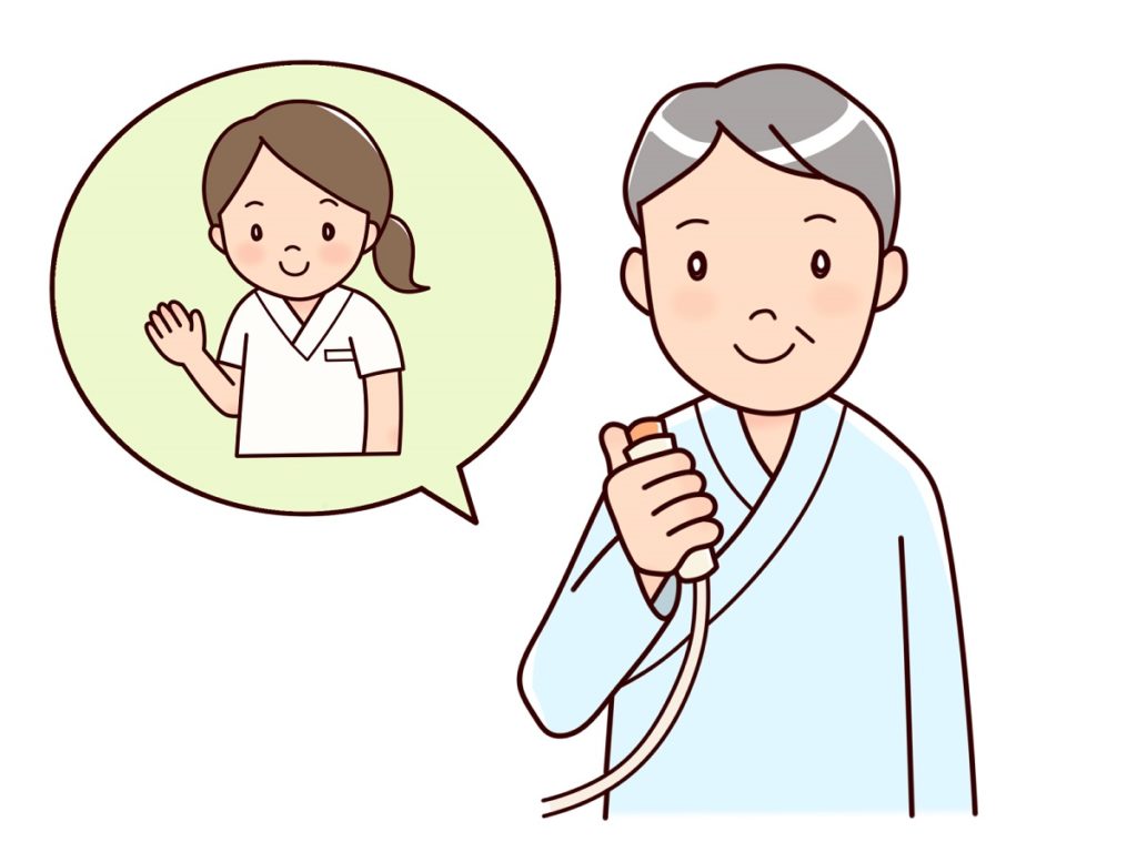 もちろん枕元にはナースコール用スイッチ、「酸素」「吸引」と印字されたスイッチのあるパネル。